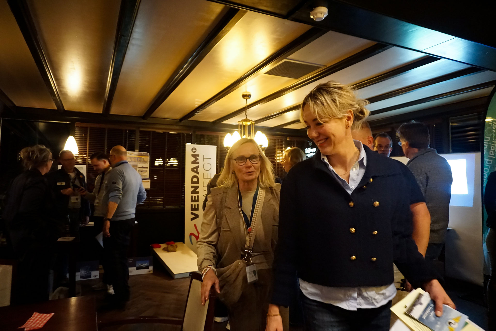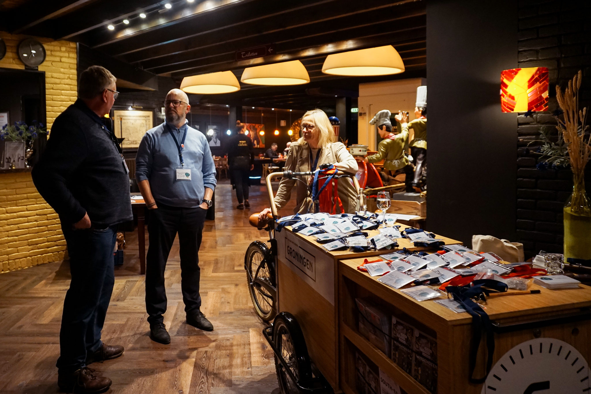 Het programma werd afgesloten met een tafelgesprek met ondernemers Thijs Huisman (Zeilschool Blauwestad) en Harmen Bos (Brouwhotel Parkzicht). Ook Kerstin van der Toorn (Manager Tourisme IHK Niedersachsen) en Wiebke Bos (Beleidsambtenaar toerisme gemeente Oldambt) schoven aan. Beide dames zijn geboren in Duitsland en getrouwd met een Nederlandse man. Deze vier beantwoordden de vragen die gedurende avond door de deelnemers op de bierviltjes waren geschreven.